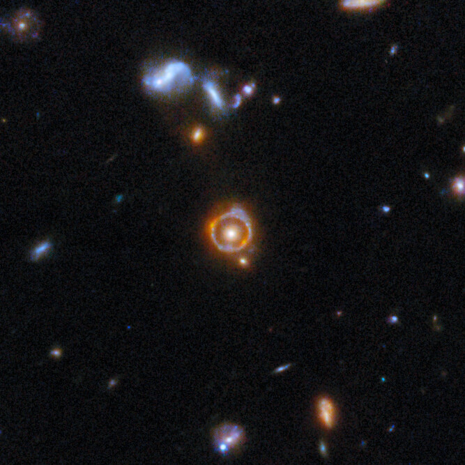 Nicknamed ‘the COSMOS-Web Ring’, this lensing system contains a massive elliptical galaxy that acts as the gravitational lens and a more distant star-forming galaxy whose light has been stretched into a perfect circle. The lensed galaxy gives us a glimpse of galactic life when the Universe was just over a billion years old.