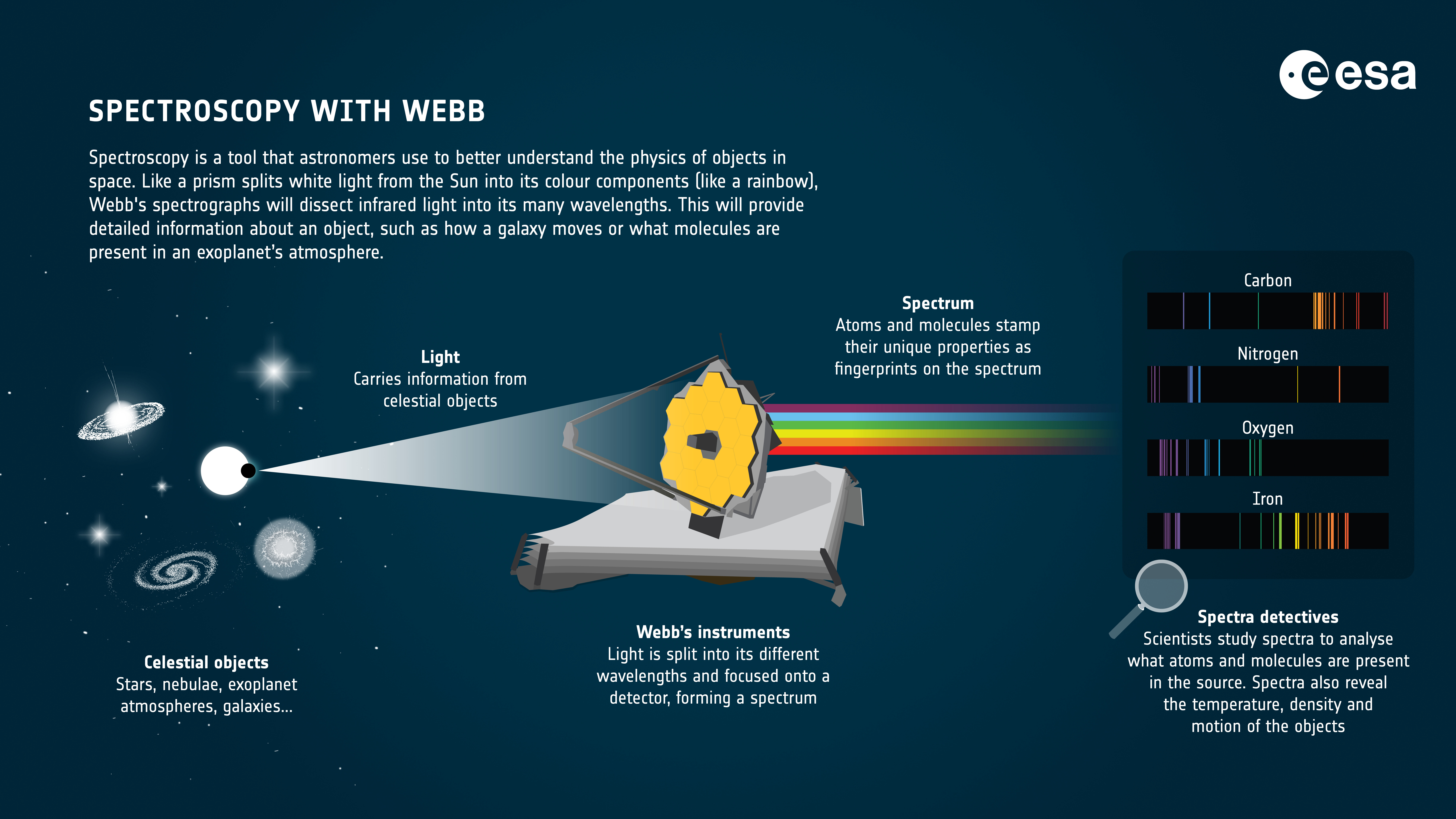 The spectrographs on board the NASA/ESA/CSA James Webb Space Telescope provide scientists with the data needed to analyse the materials that make up stars, nebulae, galaxies and the atmospheres of planets.