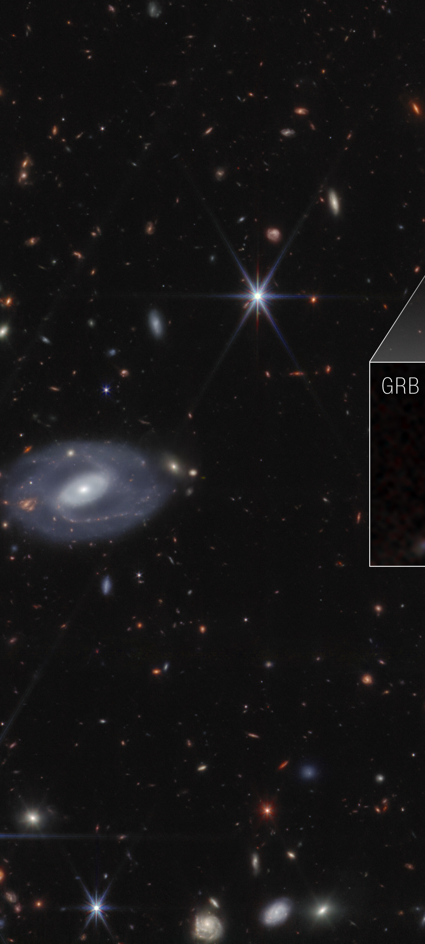 The NASA/ESA/CSA James Webb Space Telescope identified the source of a super bright flash of light known as a gamma-ray burst: a supernova that exploded when the universe was only 730 million years old. Webb’s high-resolution near-infrared images also detected the supernova’s host galaxy. Its quick-turn observations verified data taken by other telescopes that followed bright emission from a gamma-ray burst that came onto the scene in mid-March.